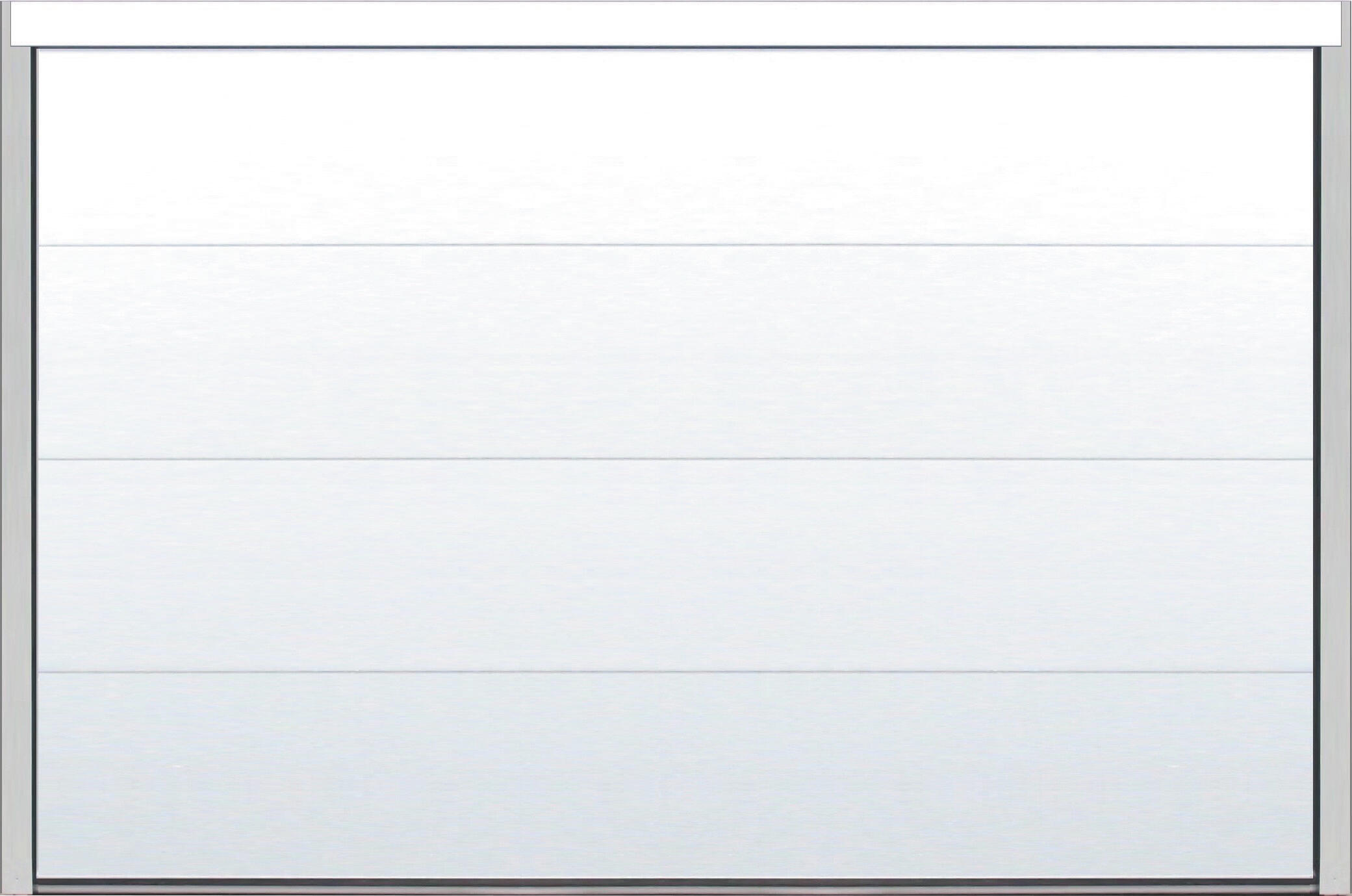 Les panneaux de cette porte sectionnelle ont un aspect extérieur polygrain (lisse microbillé) couleur Blanc RAL 9016.