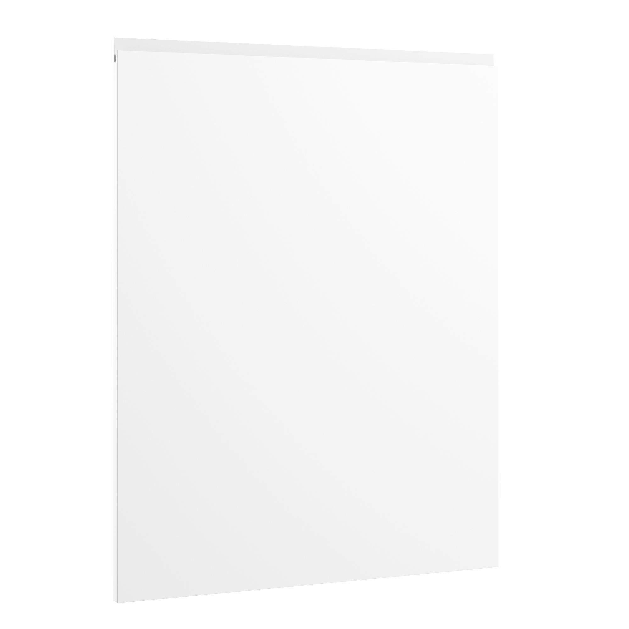 Façade en MDF d'épaisseur 19 mm, laquée finition blanc mat avec poignée intégrée type "passe-main" pour une finition épurée. La façade est recouverte de deux couches de peinture : une couche de fond en acrylique et une couche de laque mate pour une finition sans raccord très qualitative et durable. Ce modèle de façade offrira à votre cuisine un style à la fois simple, moderne et chic.