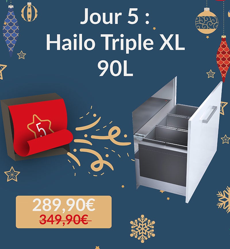 oe Encastrable, la poubelle Hailo Triple XL 28L/28L/28L se cache à l'intérieur de votre meuble.
