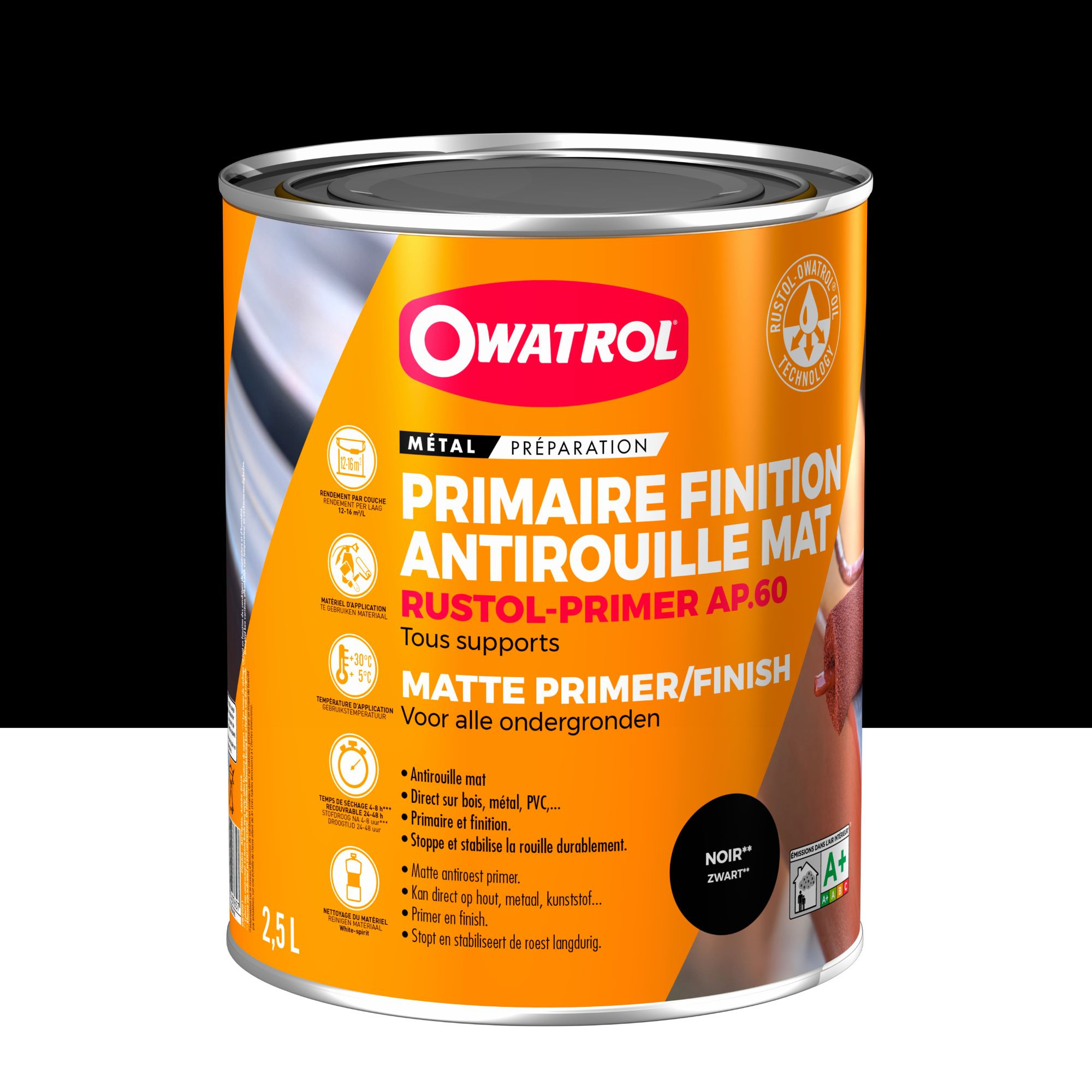Primaire et finition mat antirouille Owatrol RUSTOL® PRIMER AP 60 Noir (ow26) 2.5 litres