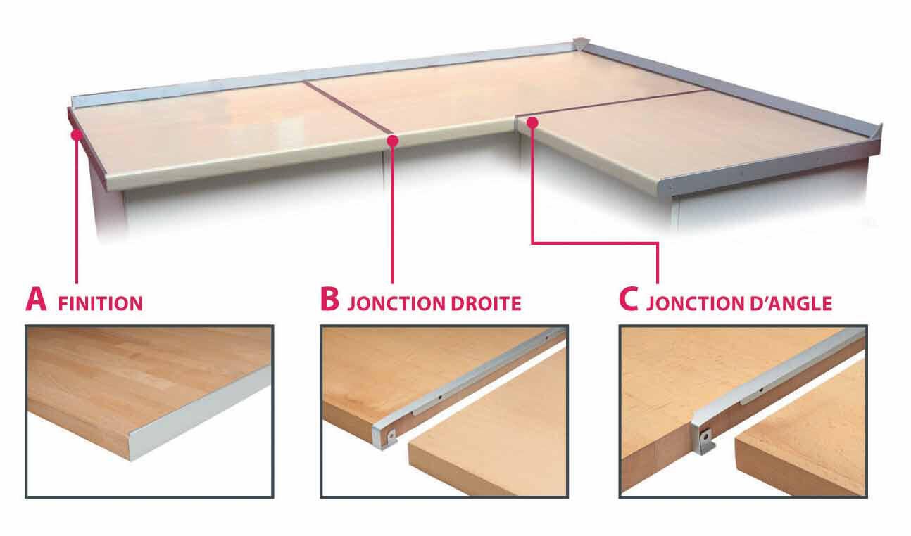 Pour la jonction bord à bord des plans de travail. Mise en oeuvre facile. Finition durable.