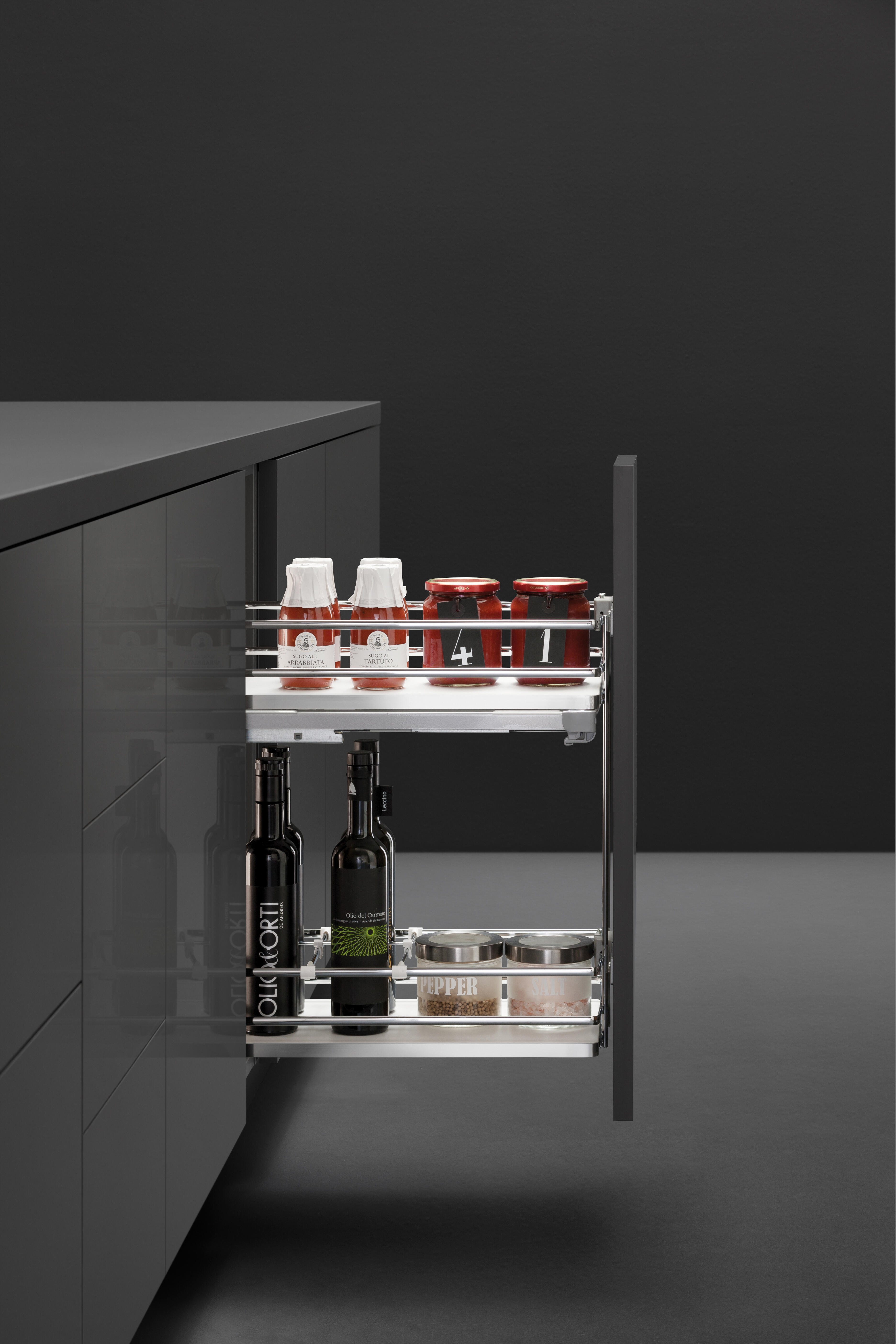Range épices fond plat gris pour meuble bas de Larg.30 cm