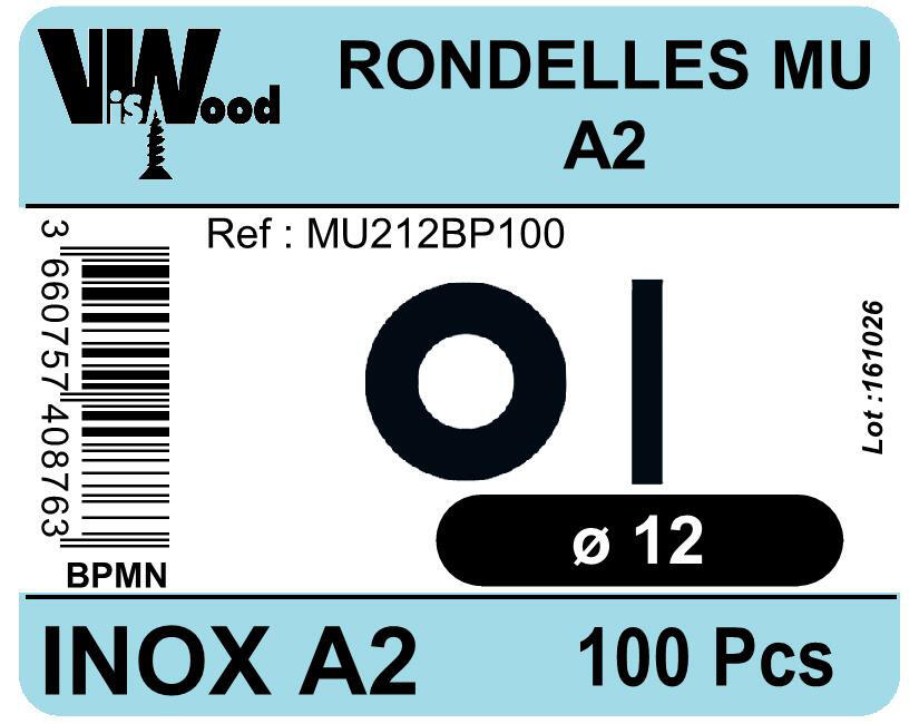 Rondelles moyennes MU inox A2 Diam. 12 x 27 mm Boîte de 100 - VISWOOD