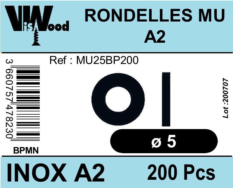Rondelles moyennes MU inox A2 Diam. 5 mm Boîte de 200 - VISWOOD