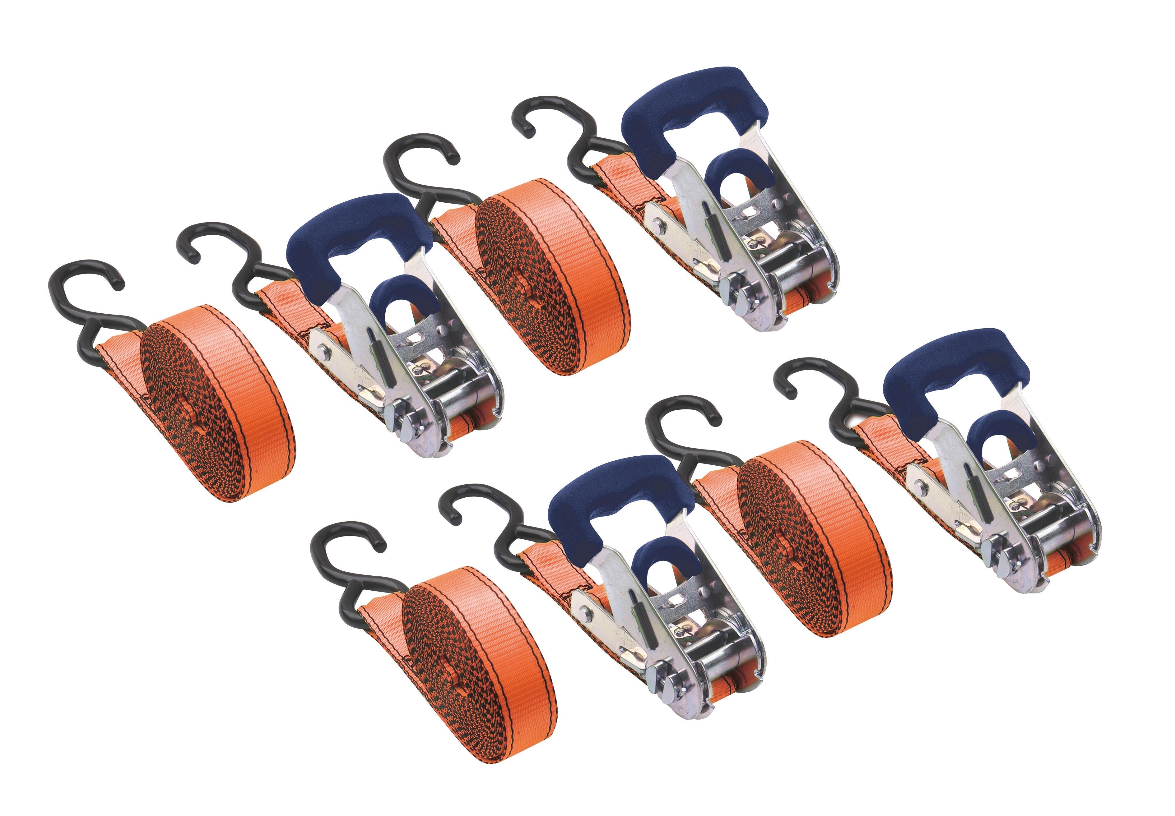 Sangles d'arrimage à cliquet Long. 5 m orange Lot de 4