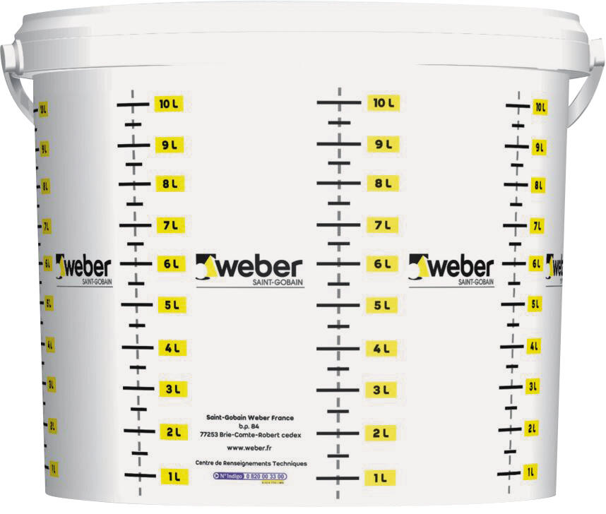Seau gradué pour doser la quantité d'eau des mortiers.