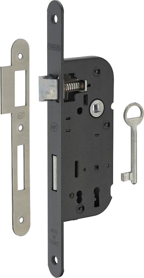 Serrure à encastrer axe 40 mm NF pêne dormant 1/2 tour bout rond - THIRARD