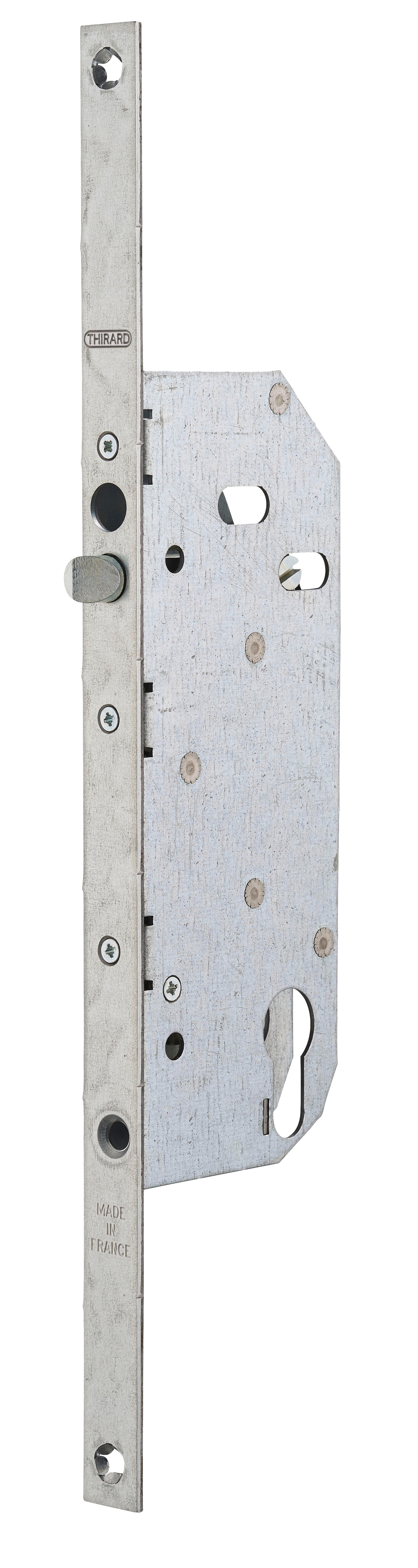 Coffre en acier épaisseur 14,5 mm. 2 pênes ronds rectilignes en acier. Réversible. Pour cylindre profilé européen. Pas de fouillot, manoeuvre de la serure uniquement par la clé. Compatible : DECENA + TRIMATIC + EUROPA + FERCOMATIC + SECURY.