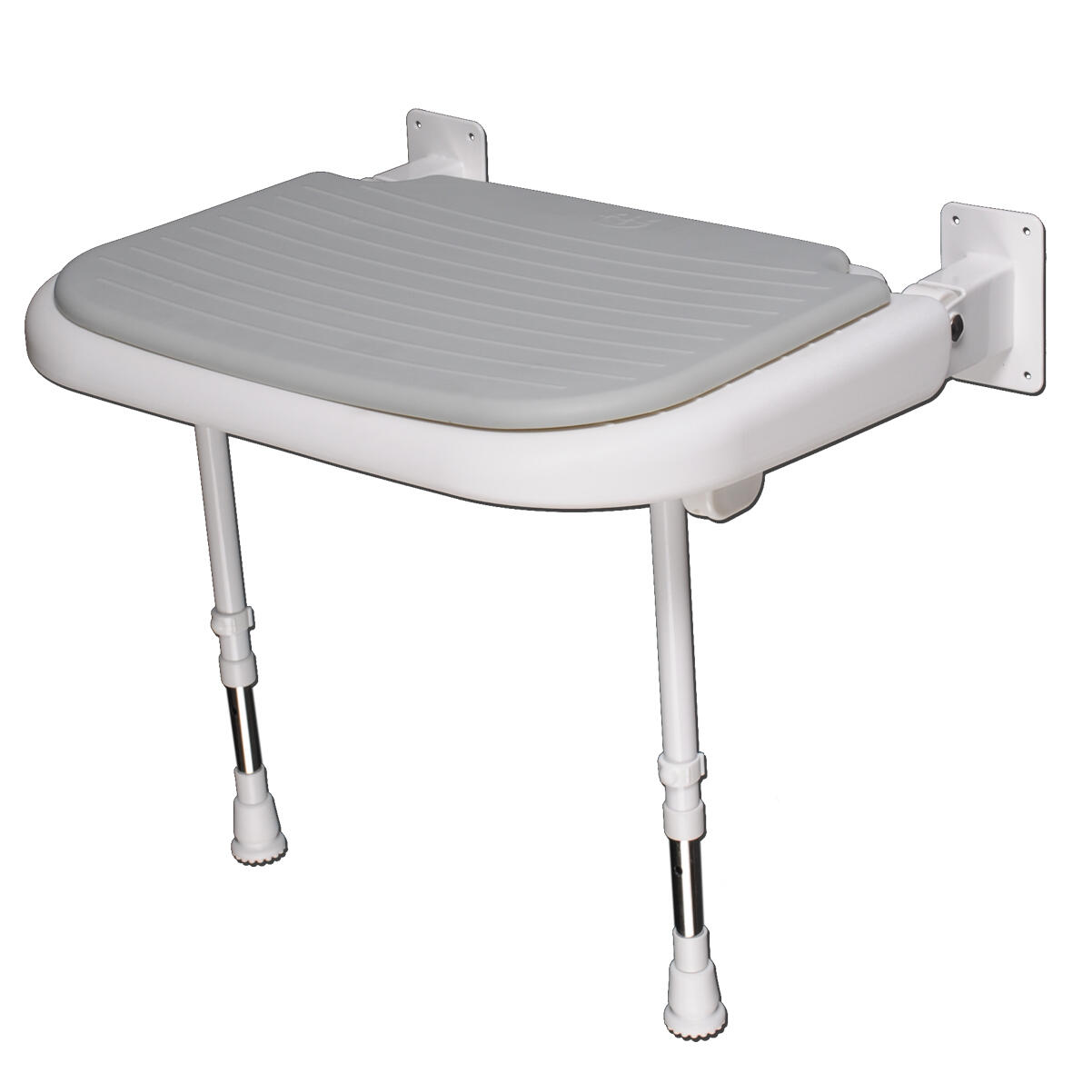 Siège de douche relevable avec Assise Simple en mousse polyuréthane Garantie à vie 8 points de fixations murales Pieds réglables de 39 cm à 64 cm hors mousse, P58,5mmxL58 cm de couleur gris réf 04210P (RAL7035) ou bleu réf 04110P (RAL5005) de marque AKW Encombrement replié 15,7 cm Charge maximale (pression statique) : 253kg Avantages : • Résistant grâce à sa conception en acier inoxydable et ses 8 points de fixation qui permettent d’atteindre une charge de 253kg • Confortable grâce à son assise rembourée qui n’absorbe pas l’eau • Nettoyage facile grâce à son assise déclipsable avec fentes d’évacuation Caractéristiques : • Charge maximale : 253kg • Dimensions : L58xP58,5 hors tout • Dimensions replié : 15,7 cm • Assise : L58xP58,5 cm • 8 points de fixation • Coussin et assise déclipsable pouvant être passé en étuve pour le nettoyage • Réglable en hauteur hors mousse (de 39 à 64 cm) • Ajustement de planéité de +- 13mm • Pieds réglables finis par embout en caoutchouc blanc pour éviter toute détérioration de l’espace de douche • Assise relevable • Coloris : gris (RAL7035) et bleu (RAL5005) Matériaux : • Structure du siège en acier inoxydable • Coussin en polyuréthane