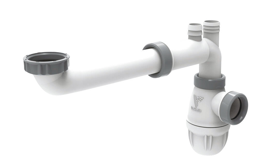 Siphon avec tubulure réglable pour lavabo Diam.32 mm gain de place réglable en hauteur blanc NF - VALENTIN Connectic