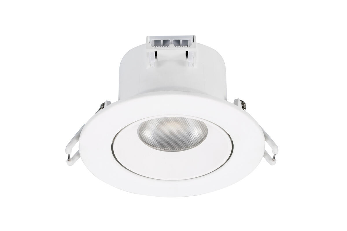 YourHome Spot 880lm 3-CCT DIM IP44 Blanc. Gamme de spots d'accentuation LED. Versions IP44 inclinables avec angle de faisceau 38° ou IP65 fixes avec angle de faisceau de 110°. Dimmable. Flux lumineux : 450lm à 950lm. Efficacité : 75lm/W à 90lm/W. IRC>80. Triple température de couleur 2700/3000K/4000K sélectionnable à l’installation. Collerette blanche, inclus un Anneau argenté supplémentaire avec fixation rapide par clipsage. Diamètre d’encastrement : 68-74mm (versions haut flux : 85-90mm). Faible épaisseur 47 mm et boîtier repiquable Loop-In Loop-Out (LILO). La version TBT est équipée d’un driver déporté et d’un accessoire permettant une installation sous isolant déroulé. Elle est installable en salle de bain, en zone 1. Durée de vie : 86 000 heures (L70). Garantie 3 ans Durée présence pièces détachée : Ce produit ne dispose pas de pièces détachées