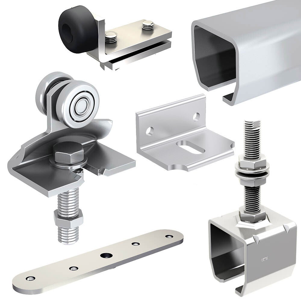 Options : SU1714 : guide avec olive en laiton SU1716 : profil de guidage en U en acier galvanisé SU2027 : kit pour une porte supplémentaire 140 kg SU2043 : support enveloppant pour fixation au plafond SU2049 : rail en acier galvanisé 1,95 m SU2051 : manchon de raccordement pour deux rails Toutes les pièces détachées pour SLID'UP 2000