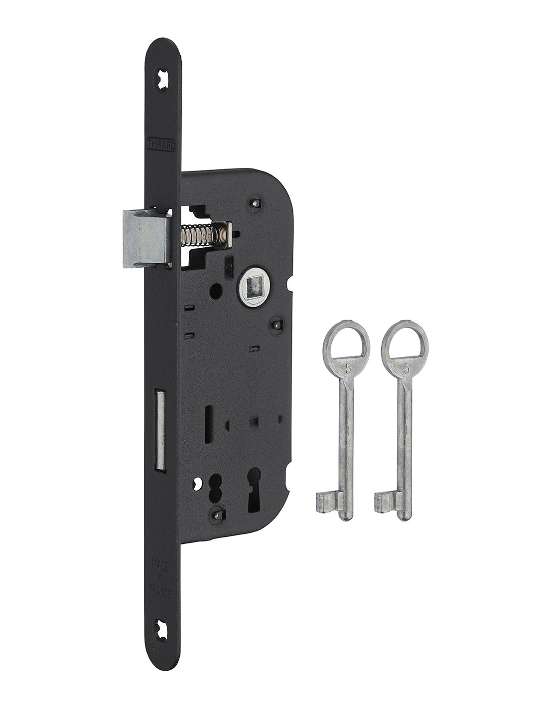 THIRARD - Serrure encastrable à clé pour porte de chambre, axe 40mm, bouts ronds, 1 tour, noir, 2 clés - THIRARD