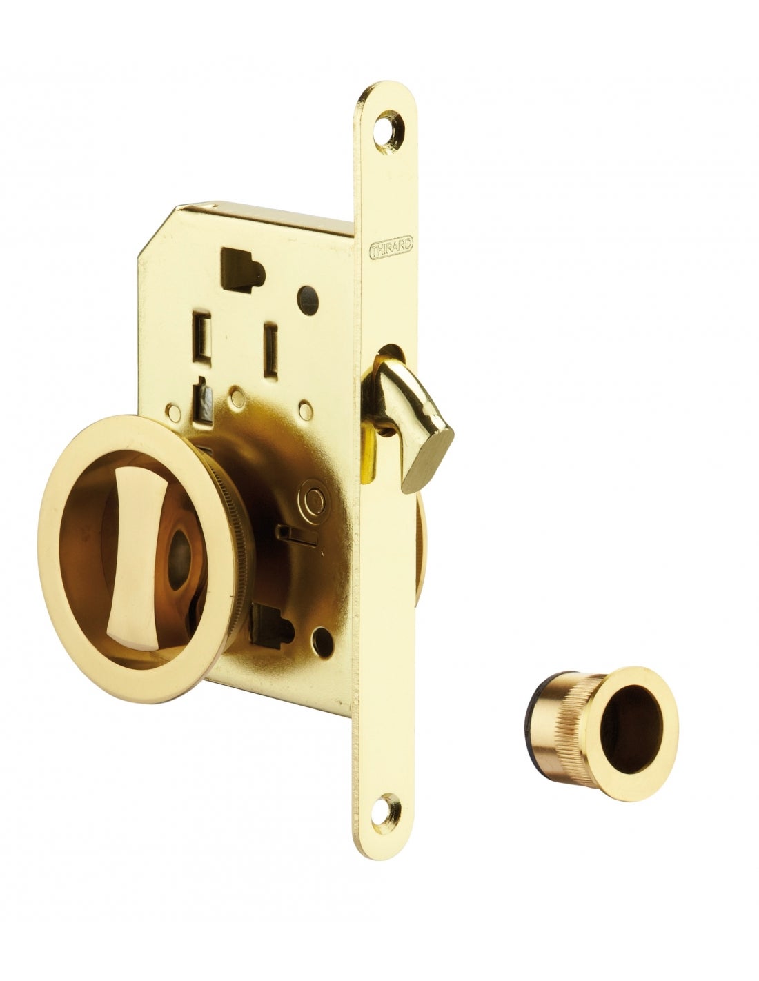THIRARD - Serrure encastrable à crochet à condamnation pour porte coulissante, axe 50mm, bouts ronds, laiton - THIRARD
