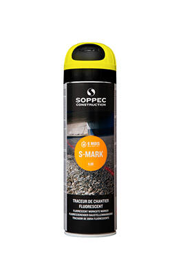 S MARK est un traceur de chantier fluorescent doté d’une bonne durée de marquage, d'une adhérence importante et d'une bonne visibilité, y compris de loin. Cette peinture de marquage fluorescente en aérosol s’utilise pour divers travaux de marquage au sol dans les domaines suivants : voiries, terrassement, canalisations, constructions, installations électriques. D’utilisation facile, le S Mark est équipé d'un capot de sécurité breveté SOPPEC. Utilisation de -20°C à 50°C. Mention légales : Dangereux. Respecter les précautions d’usage.