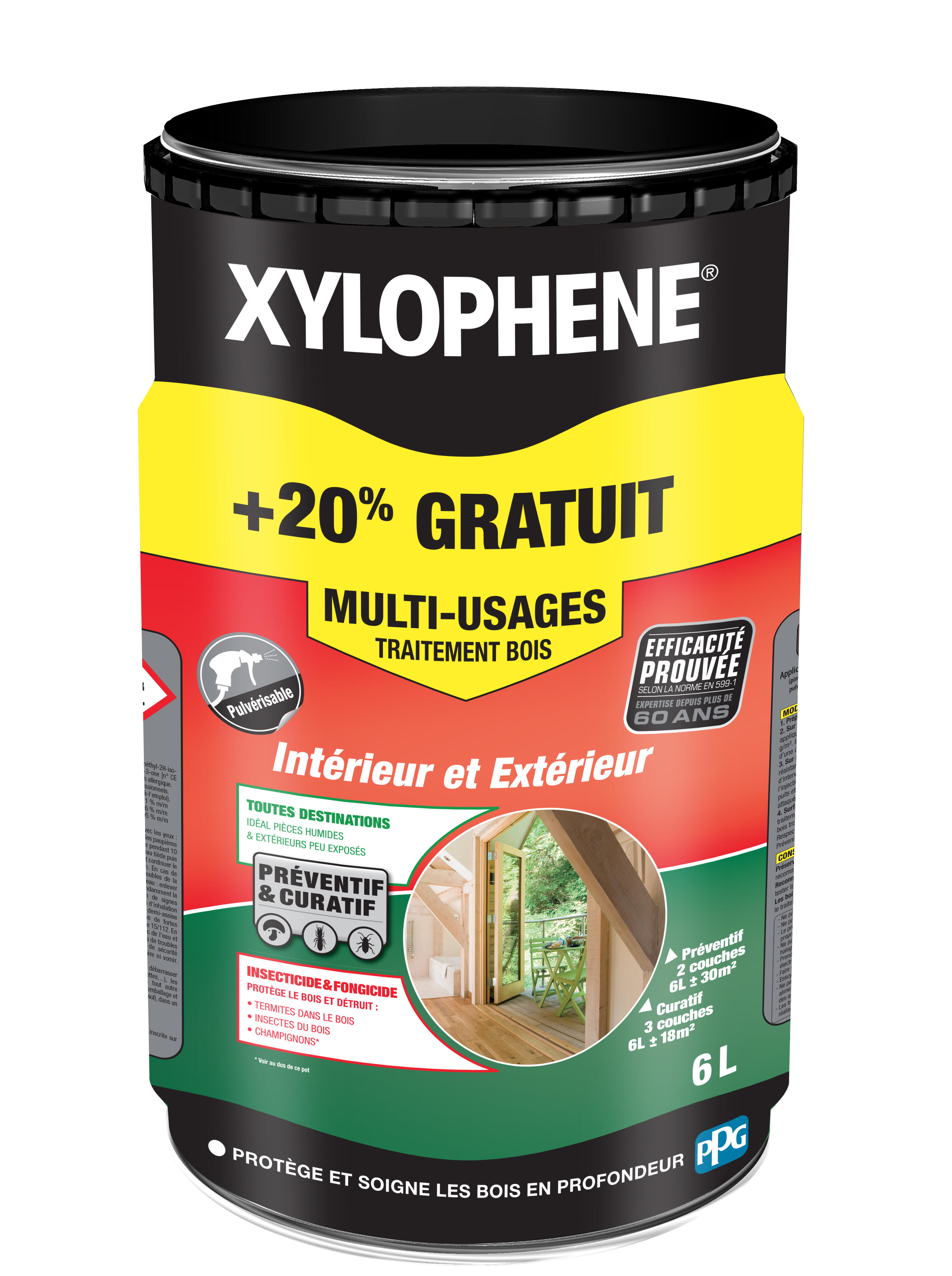 Traitement bois multi-usages intérieur / extérieur 5 L + 20% - XYLOPHENE