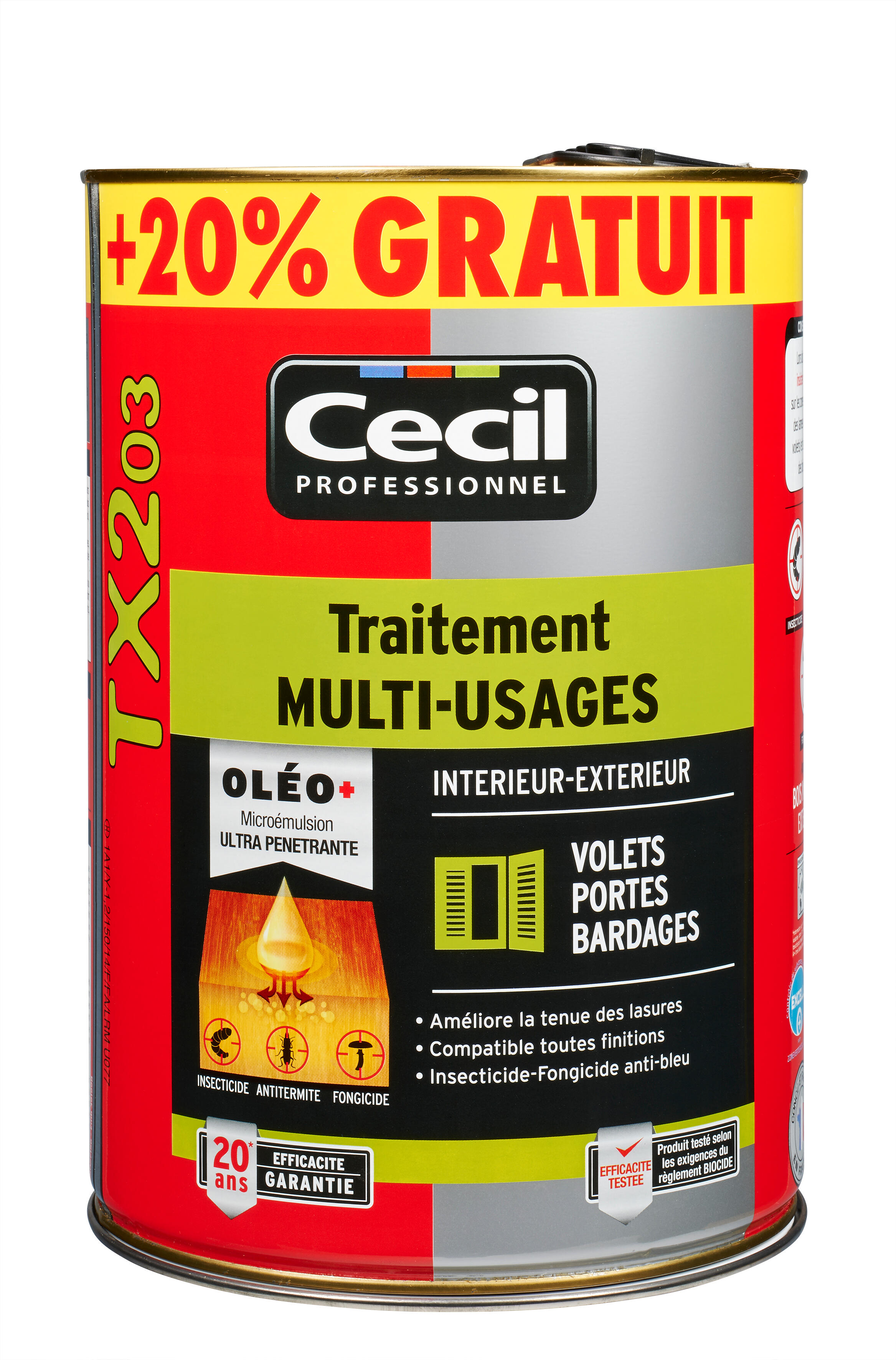 Traitement bois multi-usages volet porte bardage intérieur / extérieur 5 L + 20 % gratuit TX203 - CECIL PRO