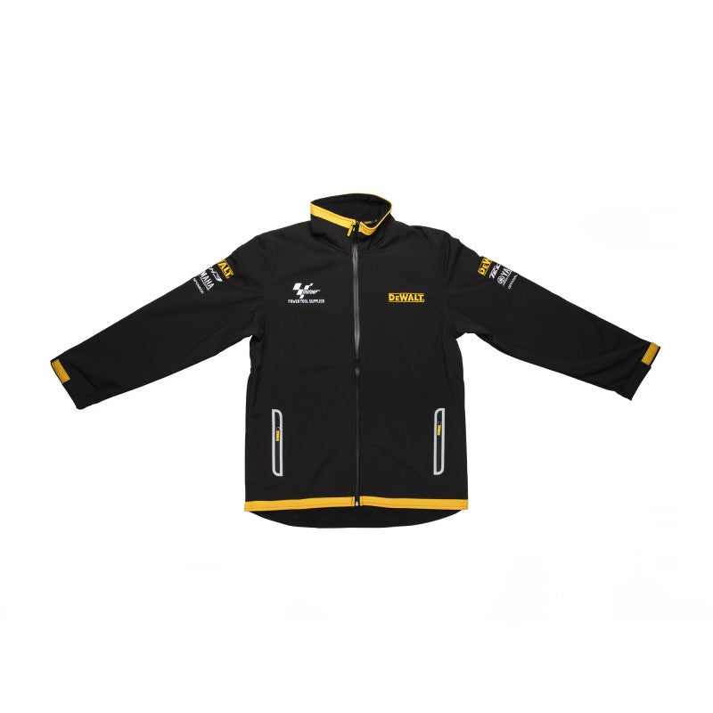 Associant le noir à des touches de jaune, la veste affiche un contraste visuel marqué et des inscriptions visibles Dewalt, Tech3 et MotoGP PowerTool Supplier qui renforcent son identité sportive et professionnelle.