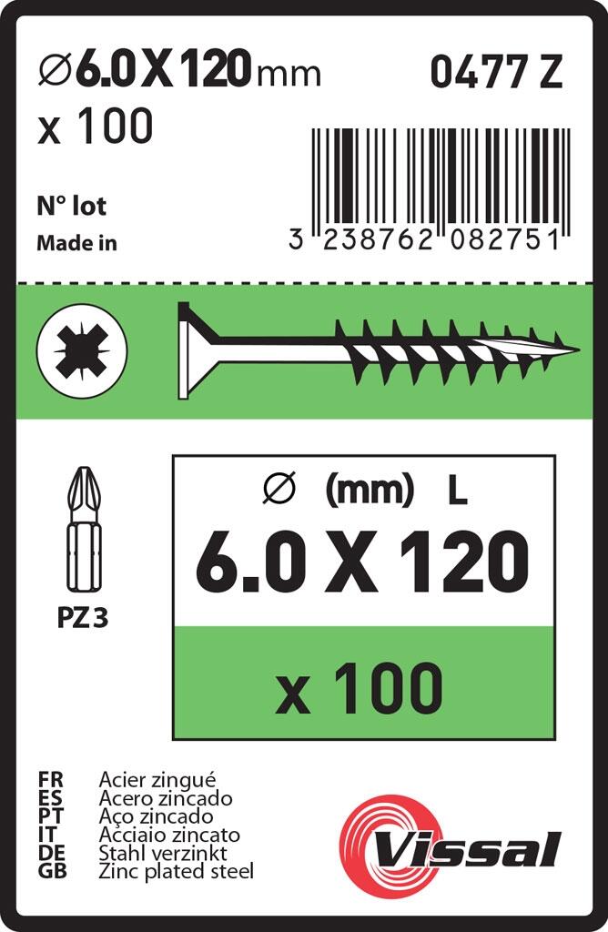 Vis bois agglo empreinte pozydriv 6 x 120 mm 100 pièces - VISSAL