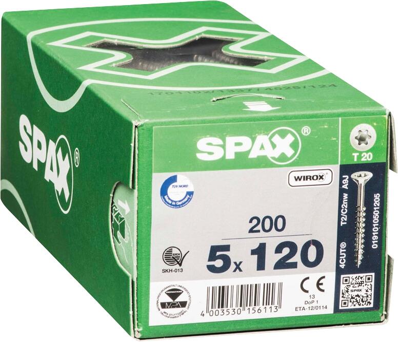 Vis bois agglo tête fraisée wirox empreinte Torx filetage partiel 5 x 120 mm 200 pièces - SPAX
