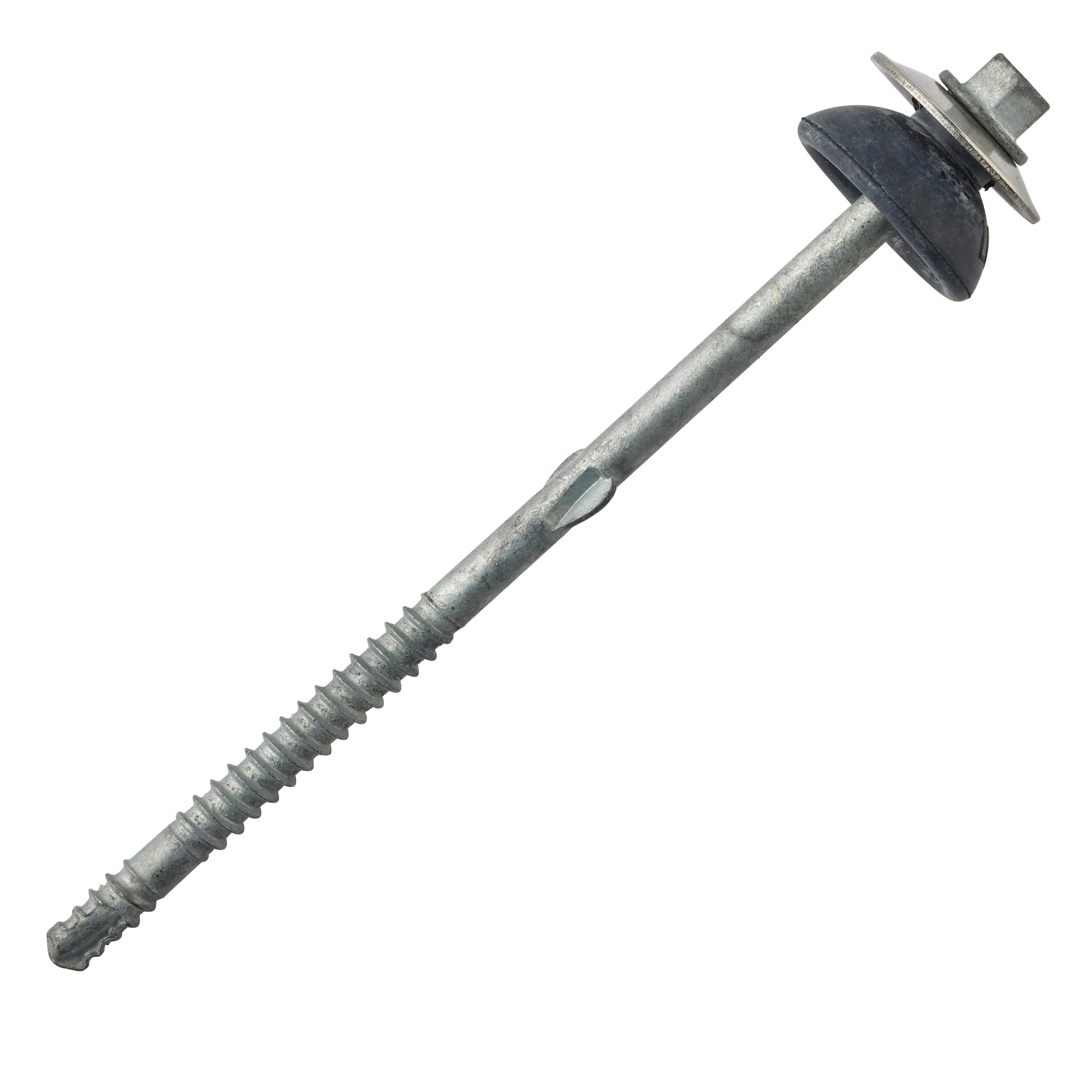En acier galvanisé à chaud. Vis autoperceuse bois à ailettes ø 6,5 x 130 mm. Tête hexagonale (6 pans de 8 mm). Prémontée avec rondelle cloche inox ø 22 mm. Fixation spéciale pour plaques fibres-ciment.