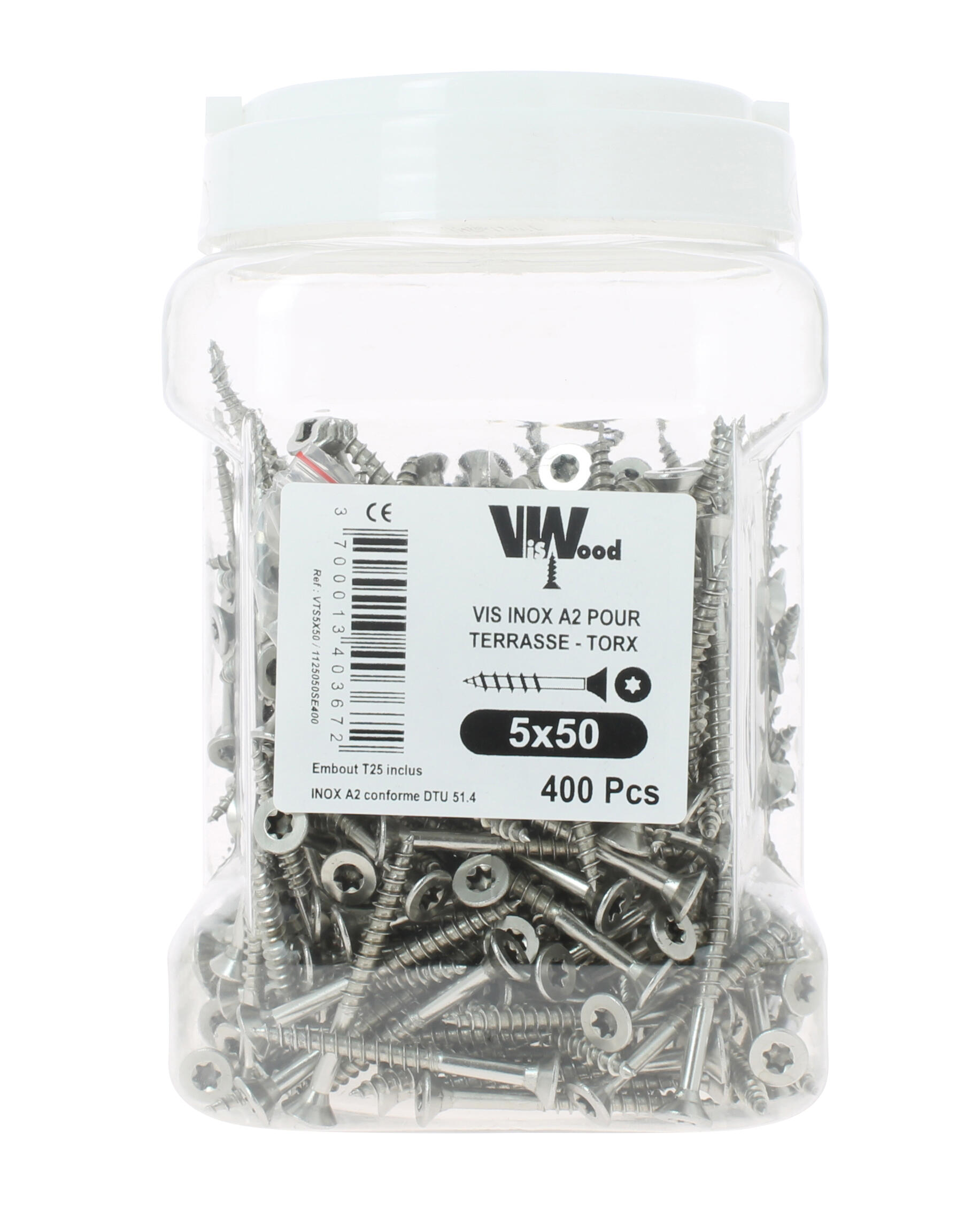 Vis terrasse bois tendre inox A2 Diam. 5,0 x 60 mm Boîte de 400 - VISWOOD